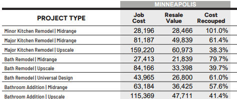 We understand a kitchen remodel is a significant investment, so we prioritize quality and communication. Our skilled craftsmen use premium materials to ensure your kitchen looks stunning and stands the test of time. With West End Kitchen, Inc., you can expect exceptional results on time and within your budget. Cost vs Value Report has average cost of a Bathroom in Minneapolis and Saint Paul
